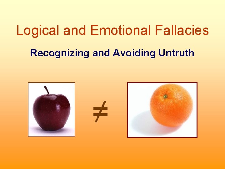 Apples and oranges fallacy examples. Enter the Apples Oranges Fallacy which one could say invalidates the current study and the previous study. Therefore no analogy is perfect so we have. Frankena felt Moore was trying to compare apples to oranges by even discussing the definition of good in such terms.